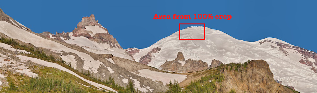 Those are climbers, miles away from where I was, making the morning ascent to the summit.  Not even remotely visible with the naked eye, in fact I didn’t know they were in the picture until reviewing it later.  The final, stitched panorama measures in at 17,674 x 5,194 pixels, or just shy of 92 mega pixels which could translate into a print of about 5 feet by 1.5 feet at 300dpi.  It would probably have no problem tripling that print size to come in at 15 feet by 4.5 feet at 100dpi, so that is pretty cool.