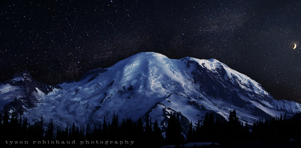 While on Rainier, I wanted to get some night shots as well.  Night shots can be tricky, largely because it is very dark.  Any light will fall off quickly and light sources are often many, many stops brighter than the subjects they’re actually lighting.  In comes the magic of the composite!