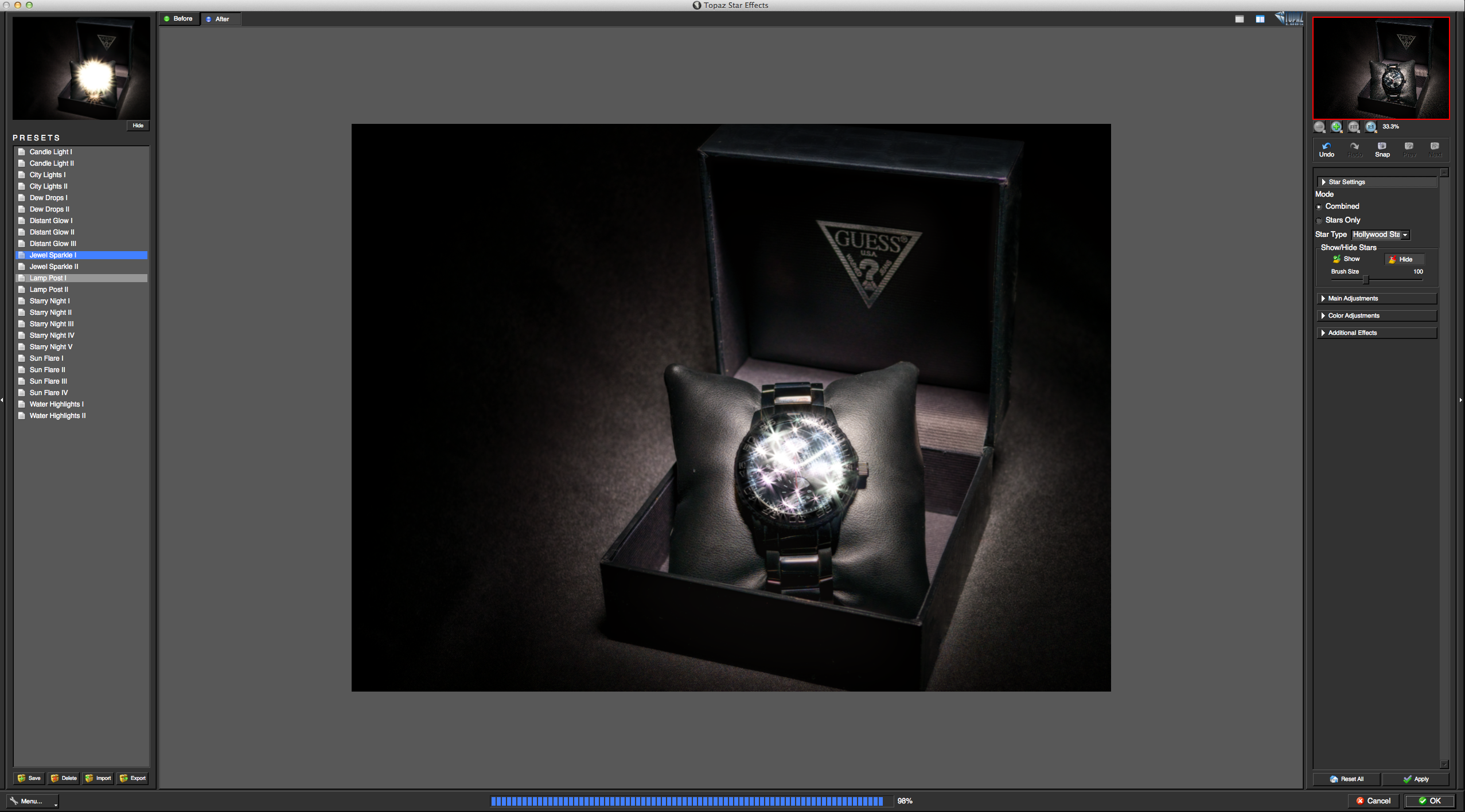 The interface is intuitive and pretty simple. Just playing around with it for a few minutes, I was able to understand, and control what I was wanting to do. It is a very simple concept, but one that can offer a very effective result when using it to enhance product shots, landscape shots, or anything where a point, or points of light are key to the composition.