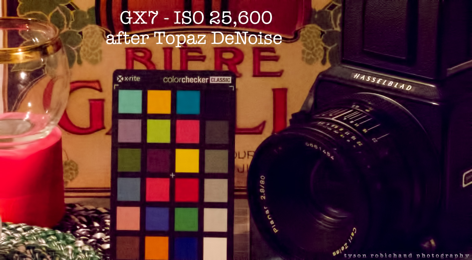 At ISO 12,800 and 25,600 they’re both noisy as all get out and I’d probably stick to my previous threshold with the GX7 at ISO 6400 unless absolutely necessary, but as you may have seen on my blog in the past with these high ISO comparisons, running one of these high ISO files through Topaz DeNoise 5 works some type of digital sorcery.  Sure we don’t magically regain resolution that wasn’t there to begin with, but it can all but eliminate the noise while doing a fine job at retaining whatever detail might have been there.  See below, and please click to see larger: