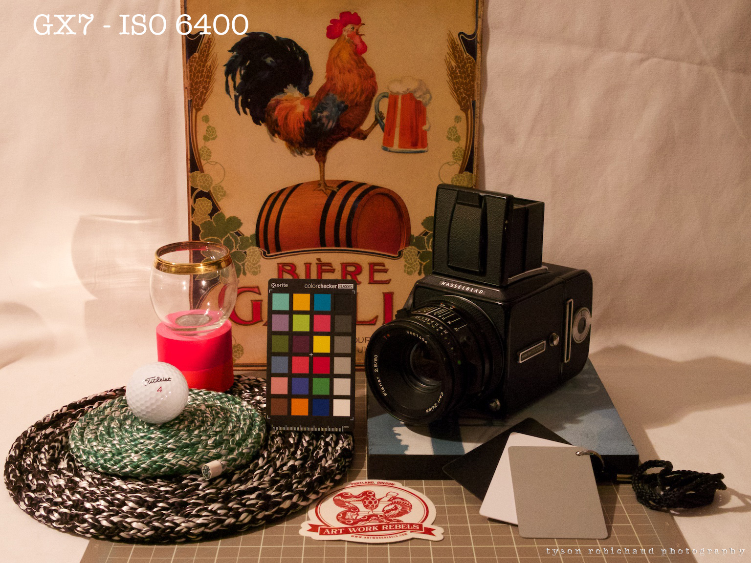To my eye, the GX7 handles the noise better up to about ISO 6400, but at each ISO setting up through 3200 the GM1, while a little noisier, is sharper. At ISO 6400 they both seem to more or less even out on the noise and sharpness and from there it just starts to get a little messy.  Again, props to both for maintaining color fidelity through the entire range.