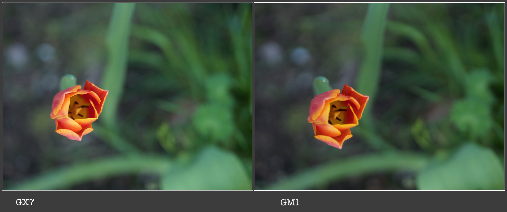 As far as any other differences, I’ve not been able to see them.  Both sensors, while tending to see color a little differently when set to the same white balance preset under identical settings, and the exposure shift to the left on the part of the GM1, all when shooting RAW files, seem to resolve similarly and perform near identically as far as noise goes to my eye.