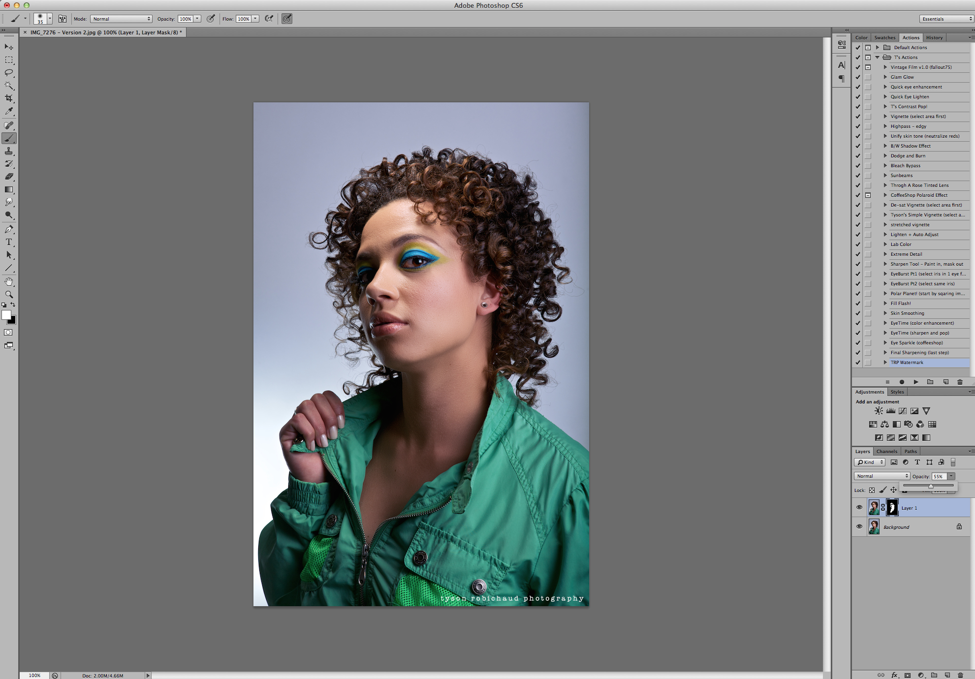 Before running Clean (or any plugin filter for that matter) I duplicate the layer I want to work on. Once I save my progress in Clean, I add an inverted layer mask (a layer mask filled with black) which hides the effect, then in the mask I paint with a white, 100% opacity brush onto the skin revealing the softened, smooth Clean layer. Once done, I then decrease the opacity of the “Clean” layer until I feel the image looks natural which will bring back some of the skin’s texture. To finish it off, I’ll drop the opacity of a black brush to around 25% and lightly blend any edges or areas that benefit from having the effect lessened. Quick, easy and in most cases takes no more than a couple minutes at most.