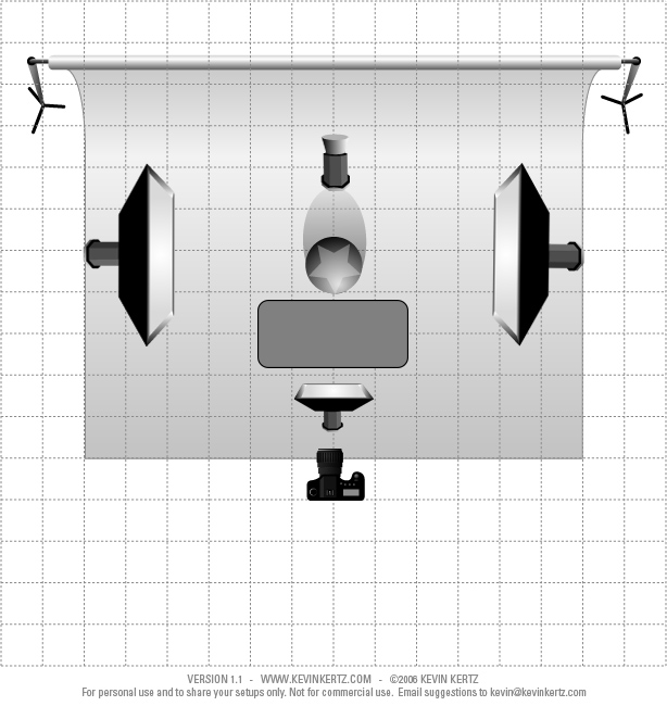 My key light was a Canon 580EXII through a homemade 4″ x 6″ diffusion box (matte board and white diffusion fabric) fit over the front with two Alien Bee 800’s through soft boxes on either side as my fill. For the 4 light setup, another 580EXII filled in.