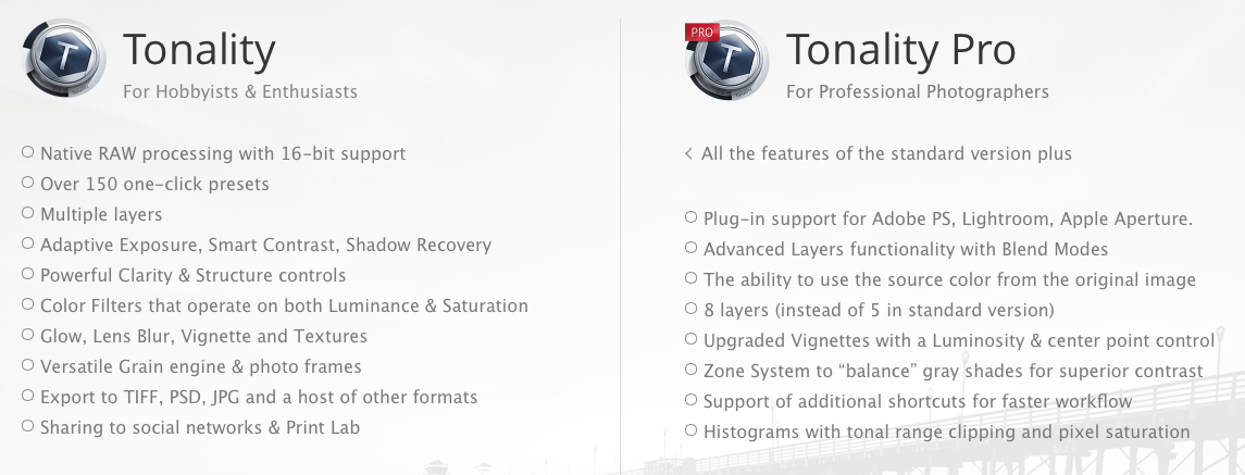 If you’re on a shoestring budget, MacPhun does offer Tonality (non “pro”) which currently runs a paltry $19.99 as an introductory offer (it will eventually jump up to $29.99 I’m told) but requires purchase through the Mac App Store. It’s a stripped down version that operates as a standalone. If and when you decide that the Pro version might be what you’re after, or prefer using this as a plugin, you can easily upgrade to Tonality Pro via the MacPhun Website for a mere $39.99 more… yep, I thought my math was off at first too. Here are the features as listed on MacPhun’s website.