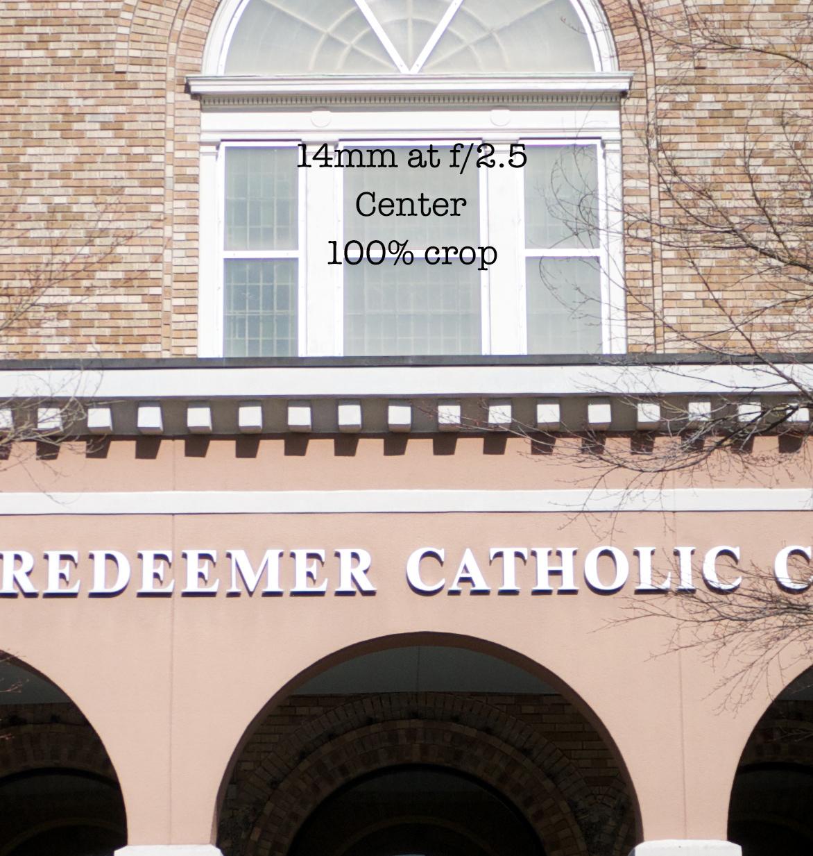 Both the 14 and 15mm show noticeable barrel distortion, evident on the edges of the frame.  The 20 seems to perform pretty well, keeping both the vertical and horizontal lines pretty square, at least to my eye.  I’m not surprised, nor disappointed by any of these results.  While noticeable in the case of the 14mm and to a slightly lesser extent, the 15mm, the distortion is subtle and really only evident on the edges of the frame. No pesky mustache distortion or anything.  For wide angle lenses that I shoot with, this is certainly within the levels of what I’d consider “normal” so to speak, and even better controlled than some 28mm – 35mm equivalent options I use elsewhere.